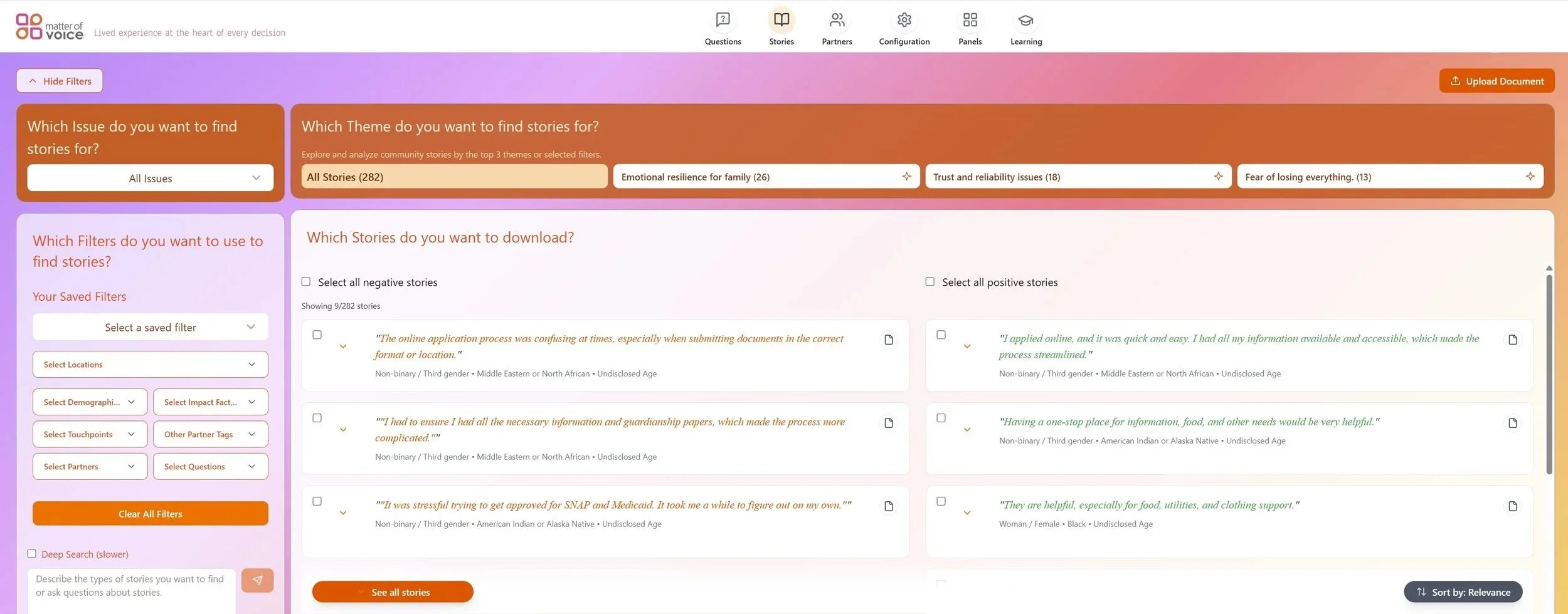 Matter of Voice is a digital platform that helps funder-grantee ecosystems collect, share and analyze stories of lived experience